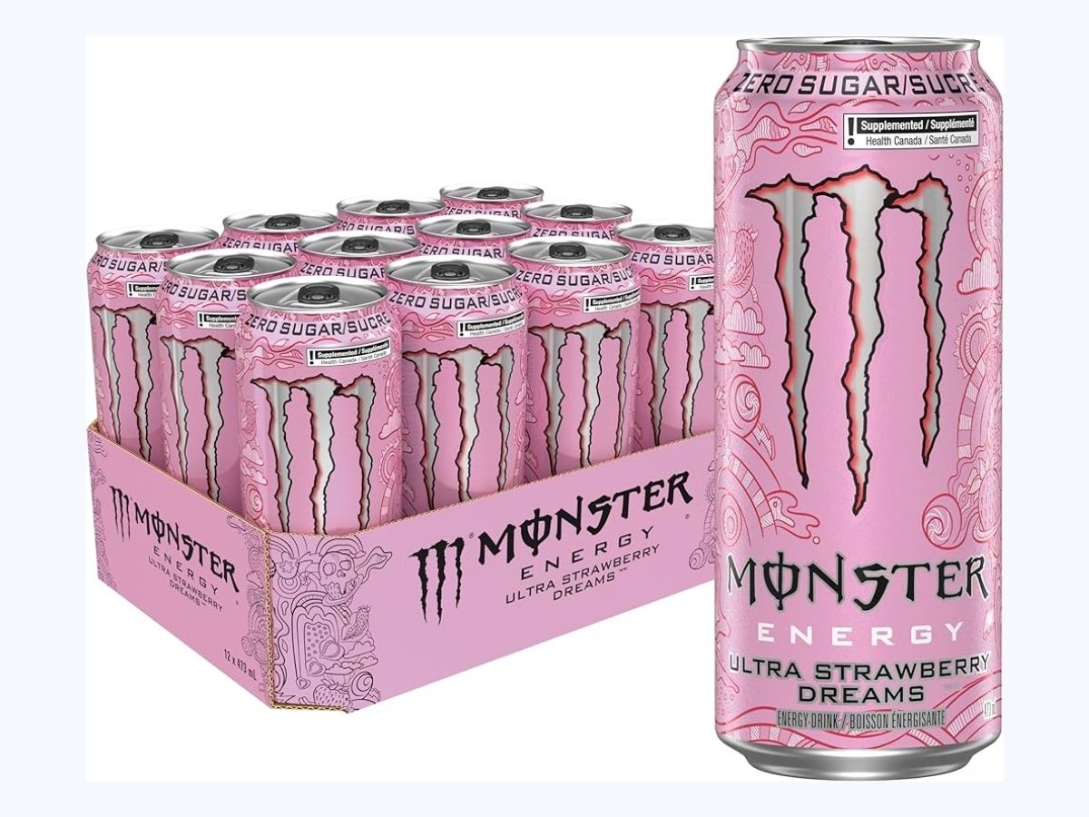 A zero-sugar energy drink with a crisp, sweet strawberry flavor. Each 473ml can contains Monster’s signature energy blend and 150mg of caffeine. Available in 12-can packs.